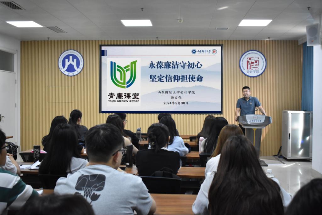 郑大伟对同学们提出三点要求:一是要以理想信念强基固本,不断深化对党的理论创新的规律性认识,在学懂弄通做实上下功夫,在立根固本上求实效;二是应有“千磨万击还坚劲”的决心,牢记初心使命,坚守清正廉洁,崇尚担当实干,切实增强廉洁自律意识;三是要做“常修廉洁之德、常怀律己之心”的有志青年,做到心有所畏,言有所戒,行有所止,涵养廉洁自律的道德修为,共同营造风清气正的良好校园氛围。