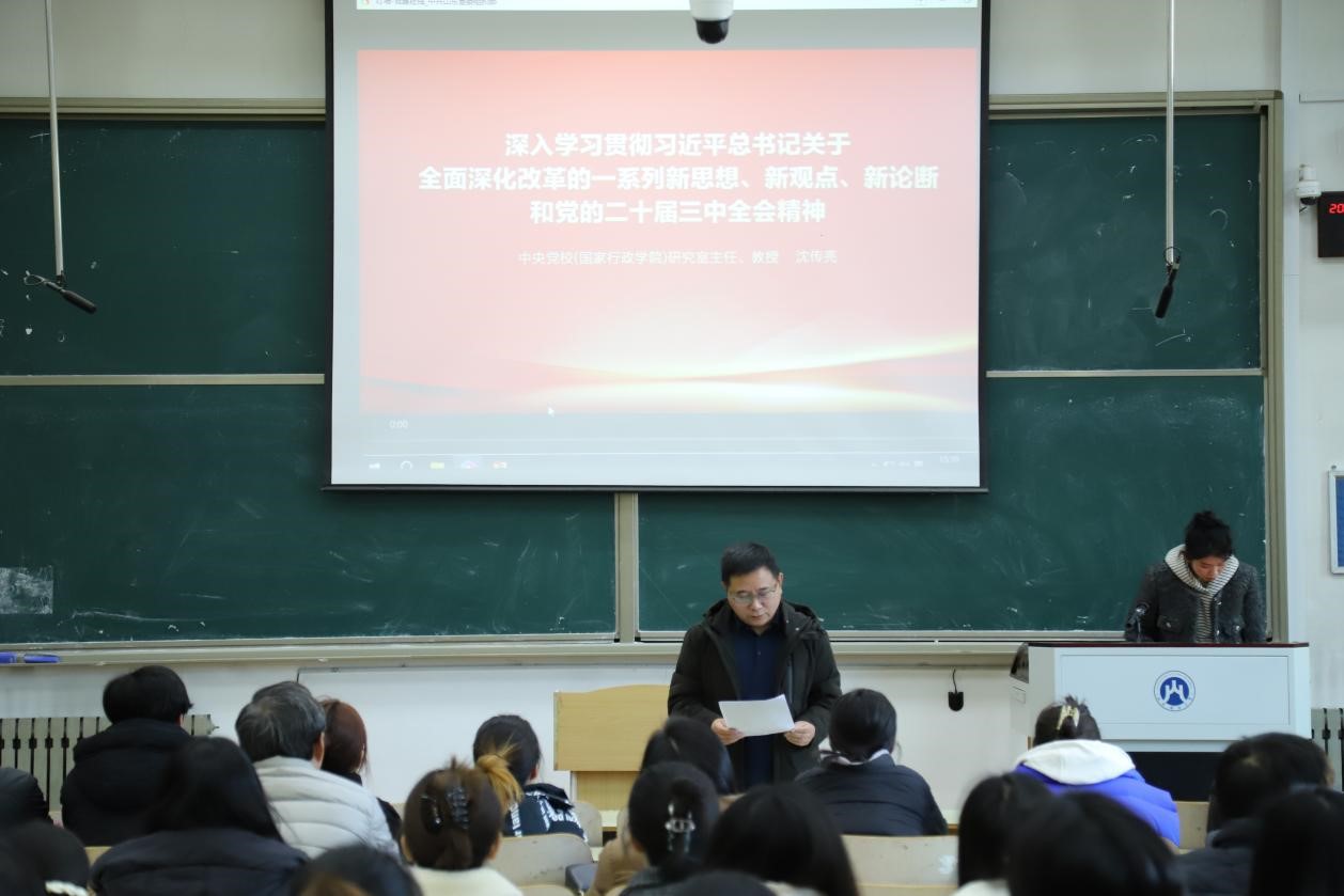 刘奇耀带领学习了习近平法治思想,从充分认识习近平法治思想的时代背景和重大意义、准确把握习近平法治思想的总体要求、贯彻习近平法治思想的重点任务三方面作了系统阐述,引领全体教职工深入学习贯彻党的二十届三中全会精神。