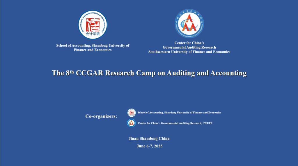 2025年6月6-7日,由西南财经大学中国政府审计研究中心(CCGAR)和山东财经大学天天澡日日澡狠狠澡欧美共同主办的全英文语境学术研讨会、第八届审计与会计研究训练营成功举办!