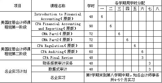 1.保证该班同学在第七学期末能到全国排名前15的知名会计师事务所实习4-5个月。