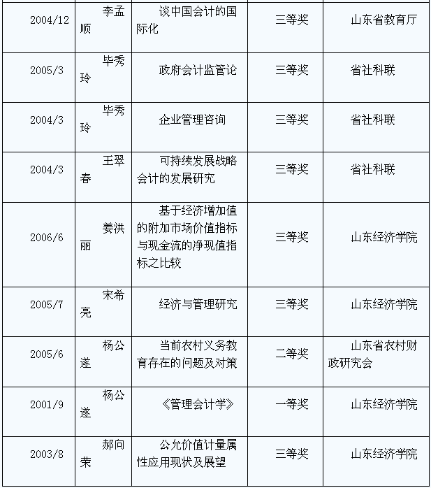 会计学科科研成果奖励情况统计表