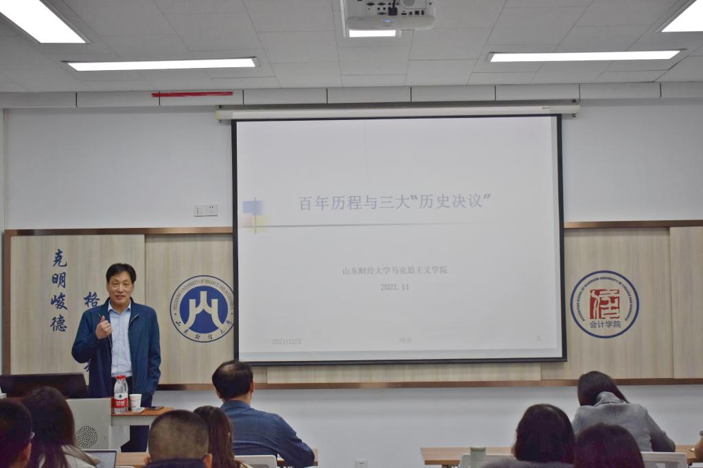 最后,邵文涛对沈教授精彩生动的讲解表示感谢。在庆祝中国共产党成立一百周年的伟大时间节点上,本次讲座的开展,让我们对百年党史有了更加全面系统的认识。在今后的生活中,我们一定会牢记习近平总书记的号召,用全会精神统一思想、凝聚共识、坚定信心、增强斗志,为全面建设社会主义现代化国家奋斗。
