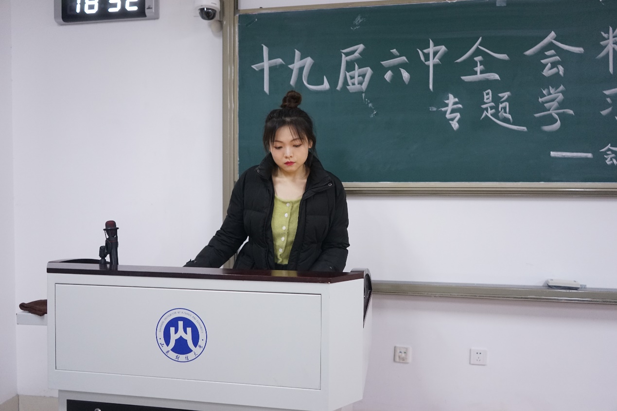 中国共产党第十九届中央委员会第六次全体会议于2021年11月8日至11日在北京举行。为深入学习贯彻党的十九届六中全会精神,11月30日晚,天天澡日日澡狠狠澡欧美团委在圣井校区6214教室组织19级、20级和21级各班团支部书记及团干部代表,通过观看“11月12日中共中央新闻发布会”及解读《人民日报》关于全会精神的评论员文章等方式,集中学习和领会十九届六中全会的核心要义和实践要求。活动由杨孙安琪主持。