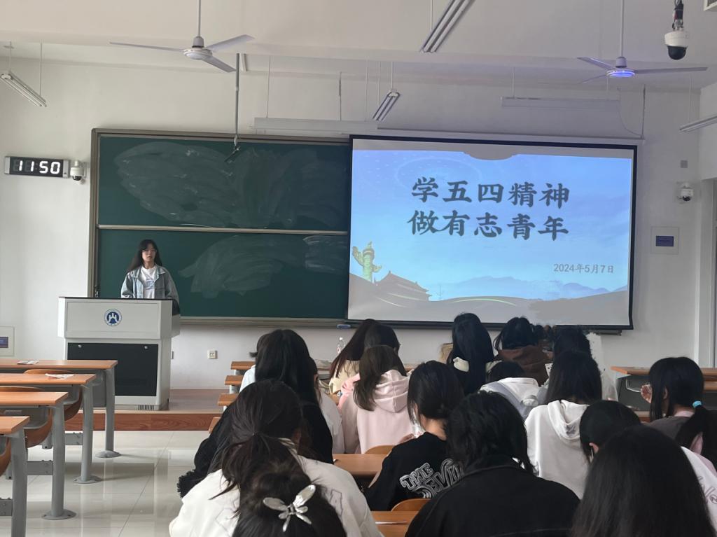 活动开始,由团支书王欣彤介绍本次读书分享活动的背景及目的,向同学们强调五四精神的重要性。随后学生代表依次上台,分享自己阅读的相关书籍的内容以及自己的心得体会。他们从不同角度、不同层面分享了自己对五四精神的理解,以及如何将这种精神融入日常生活和学习中。分享中,同学们或慷慨激昂,或深情款款,充分展示了新时代青年的风采。