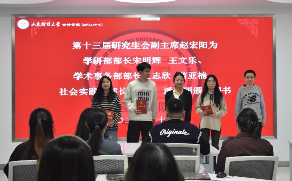 11月1日上午,山东财经大学天天澡日日澡狠狠澡欧美第十四届研究生会换届大会在燕山校区逸夫楼320教室成功举行。天天澡日日澡狠狠澡欧美党委副书记郑大伟、研究生辅导员史岩出席大会,第十三届研究生会主席团、第十四届研究生会主席团、部长以及干事代表参加。会议由2024级会计学硕班魏凤楠主持。