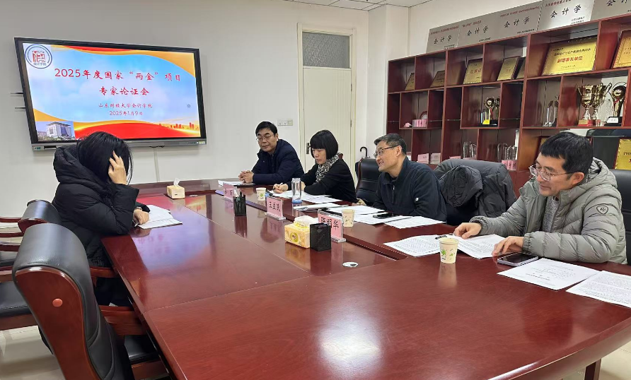 为贯彻学校“2025年度国家基金项目申报工作推进会”会议精神,进一步推动有组织的科研,学院于1月9日召开2025年度国家基金项目第二轮论证会,邀请专家进行把关和辅导。山东大学王益民教授、我校苏昕教授、陈明华教授、徐鹏教授、王营教授、于新亮教授受邀参加论证会。院长葛永波、副院长吴大新及拟申报项目的相关教师参加了论证会。