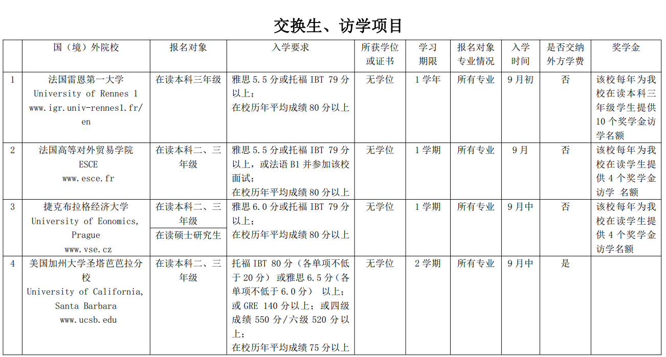 山东财经大学天天澡日日澡狠狠澡欧美学生出国项目一览表