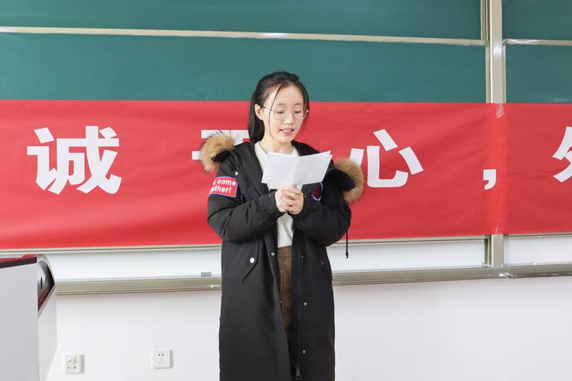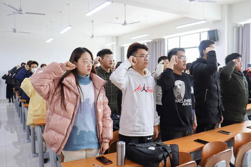 学生代表姜天琦从备考和应考两个方面向同学们发出倡议。积极备考,在考前充分利用各类学习资源,把握好复习节奏,积极迎接考试的到来。在温习的过程中不断地查漏补缺,完善自己,将知识内化,信心满满地迎接考试。诚信应考,端正考试态度,严肃考风考纪。做诚信考生,以诚信考试为荣,以考试作弊为耻。相互监督,抵制不良考风,勇于检举揭发考试作弊行为。在不良念头面前,严于自律,营造健康良好的考场考风,还考场一片纯净的天空,交出一份合格的诚信答卷。姜天琦还带领大家进行宣誓,“诚信做人诚信考试”铮铮誓言,铿锵有力。