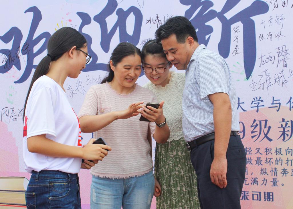 15日上午10时许,山东财经大学党委书记王邵军,党委副书记车滨、赵友春,纪委书记姜波,副校长张书学等校领导以及各职能部门负责人来到学院迎新展位前,在详细听取学院的迎新工作进展及新生报到情况后,王邵军对学院迎新成果表示认可并在迎新现场签名留念。王邵军对前来报到的新生与家长们表示欢迎,与学院19级少数民族学生亲切交谈,仔细询问了她们的生活近况,希望同学们珍惜美好时光,砥砺品德,刻苦学习,全面发展,掌握真才实学,努力成为建设伟大祖国、建设美丽家乡的有用之才、栋梁之材。同时,他对现场工作人员及学生志愿者致以慰问,为会院迎新工作的顺利完成注入了极大的精神力量。