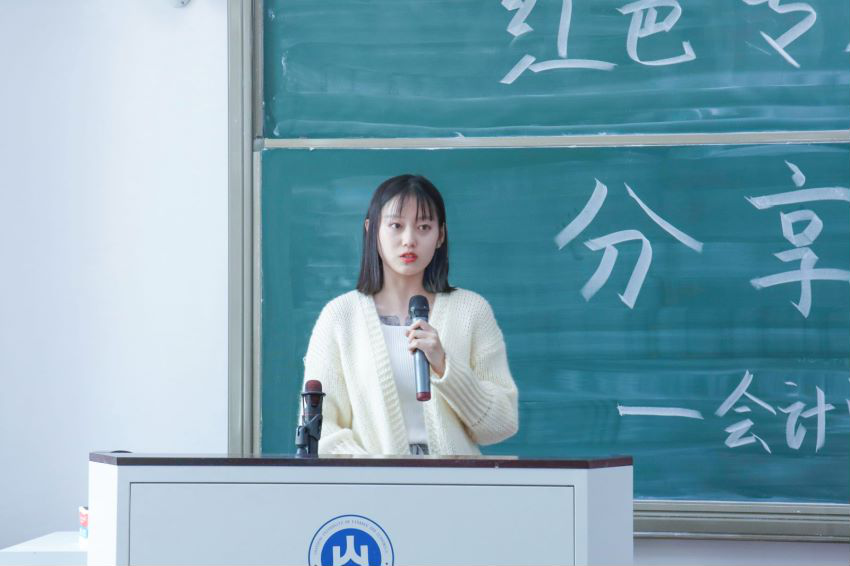 张宇暄介绍了“后疫情时代红色旅游资源内部控制有效性研究”团队的调研情况,就调研过程中线上会议效率低下的情况和原因展开深入剖析,并从及时听取公司内部周会、主动询问专业人员、做好团队内部分工与时间规划等从多个方面提出了解决方案,结合自身经历向大家分享经验。