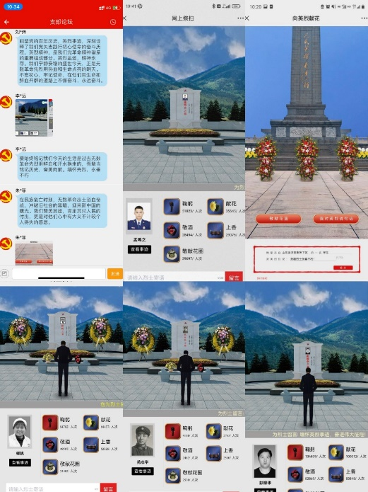 二是组织开展“红色云展厅”网上参观活动。各支部党员通过登录人民网首页等方式进行参观学习,并在“灯塔-党建在线”的支部论坛中交流感悟。郭春萌表示:“回望党的百年历史,英烈事迹,深刻诠释了我们党矢志践行初心使命的奋斗历程。英烈精神,是我们党革命精神谱系的重要组成部分。英烈虽逝,精神永存。”此次“红色云展厅”活动通过线上“云参观”红色纪念馆,大家共同瞻仰了百团大战纪念馆、铁道游击队纪念馆等革命圣地,增强了爱国情感,学习了百年党史,传播了先进文化,坚定了中国特色社会主义方向,激起了广大党员的学习热情。