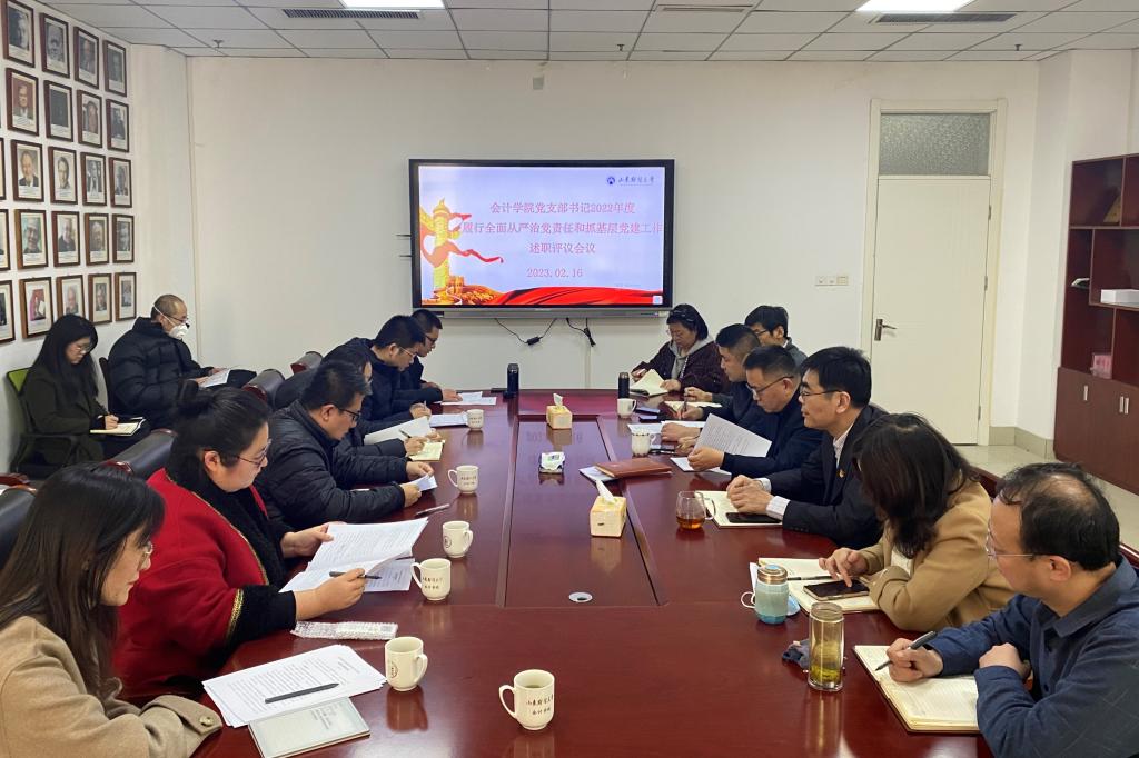 为深入学习贯彻习近平新时代中国特色社会主义思想和党的二十大精神,落实全面从严治党主体责任,扎实推进基层党组织建设,2月16日下午,学院党委召开2022年度党支部书记履行全面从严治党责任和抓基层党建工作述职评议考核会议。学院党委委员和全体党支部书记参加会议。会议由党委书记邵文涛主持。