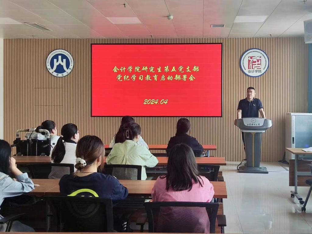会议传达了《中共山东财经大学委员会关于在全校开展党纪学习教育的通知》精神。邵文涛指出,党纪是党的生命线,是维护党的团结统一、保持党的先进性和纯洁性的重要保障。党纪学习教育事关党的建设和发展,我们要充分认识开展党纪学习教育的重大意义,切实把思想和行动统一到党中央决策部署上来,教育引导党员树牢党规党纪意识,筑牢思想和纪律防线,进一步提高党组织的凝聚力和战斗力,为推动学院事业高质量发展提供坚强保障。