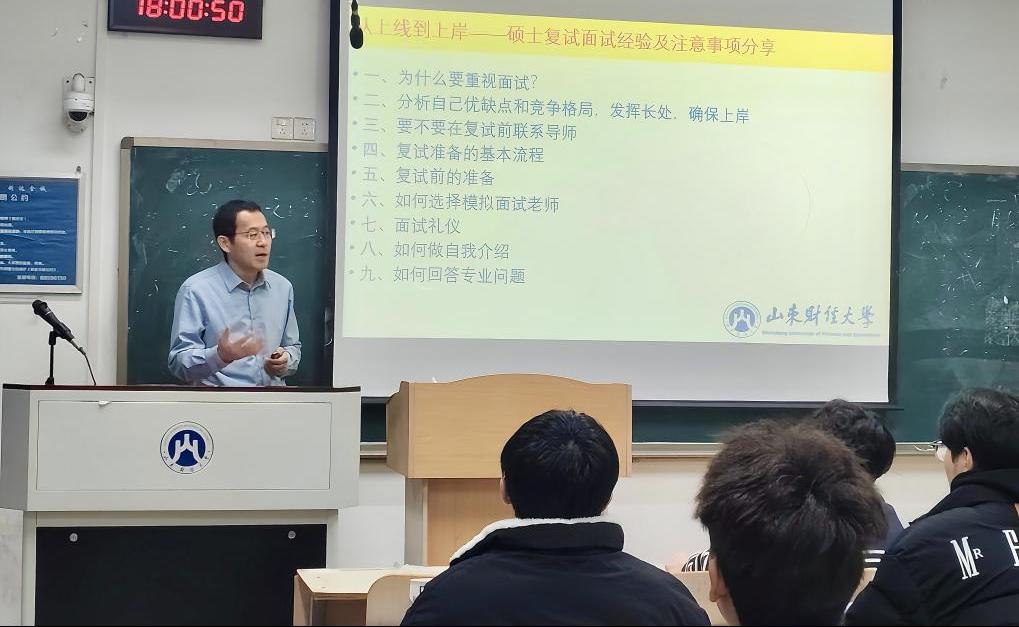 在本次讲座中,刘德运老师聚焦复试核心问题,从复试认知、准备流程以及面试技巧三个方面,为我院毕业生提供了清晰的指导和帮助。