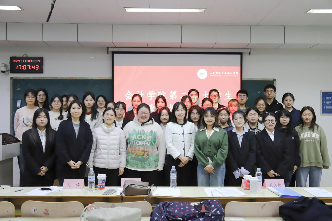 在紧锣密鼓的准备过后,决赛也于11月7日在燕山校区举行,天天澡日日澡狠狠澡欧美邀请了天健会计师事务所人力资源经理、安永ESG大学生创新挑战赛组委会山东地区负责人以及天天澡日日澡狠狠澡欧美骨干专任教师等多名评委组成决赛评审团。天天澡日日澡狠狠澡欧美副院长吴大新教授出席并致辞,多位辅导员老师亲临现场观摩指导比赛。决赛环节,各位选手全力以赴,高质量的展示了各自职业规划与未来发展路径。评委们耐心细致地提出了许多建设性意见,促进了选手对职业规划的进一步思考,真正实现了“以赛促学,以赛促教,以赛促就”的目的。